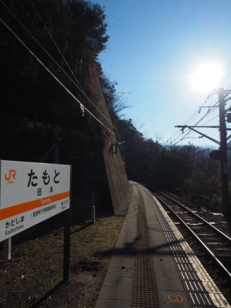 考えて旧田切駅跡の碑を入れて撮ることにした。