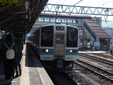 本日は満席。すげえ。駒ヶ根でガラガラだった車内は伊賀良までにほぼ満席になった。
