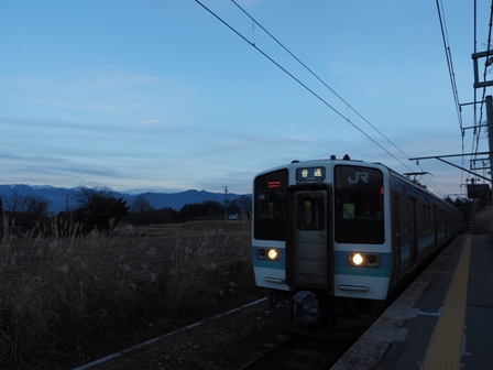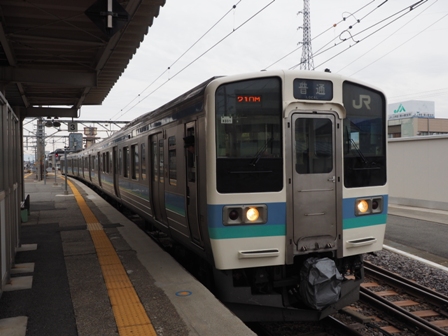 行き先はなんとなく決まる。バッタソフトはやだ(逝)時刻表を見て、1本後の下り普通に乗ることにする。それまでに上り普通が1本くる。どこで撮ろうか。