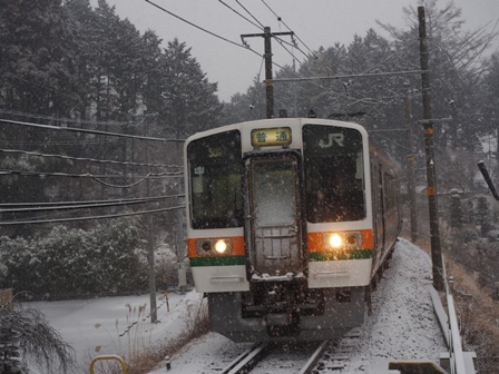 駒ケ根に戻るから、下り普通に乗るのだけど、このタイミングで上り電車が2本連続で先にやってくる。本当なら待ってたかったが強行したら雪だるまになってたかも知れない(逝)