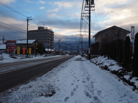 上の写真を撮った数分後には雪が路面に。