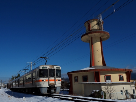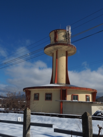 本当はもっと撮りたい場所があったんだけどスマホ置き忘れ事件と大雪で大きく狂ってしまった。ま、前者は完全に自業自得だが。ところで、駒ヶ根駅の近くに変な建造物を見つけた。なんだこりゃ。