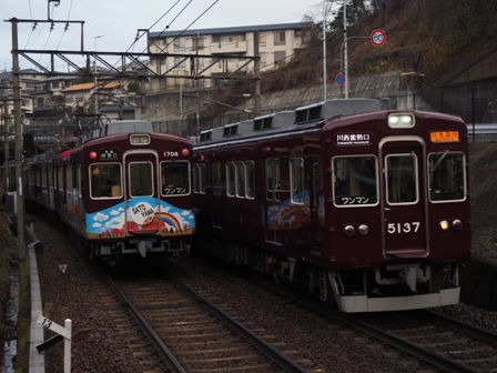 まだ薄暗い中、先週と同じく能勢電鉄の急行を狙う。下りホームから撮っていたらずっと駅長一人だったけど、上りホームには人だかりができてた。そりゃ下りホーム側は逆光だけどさ。難かまずかったのかな。