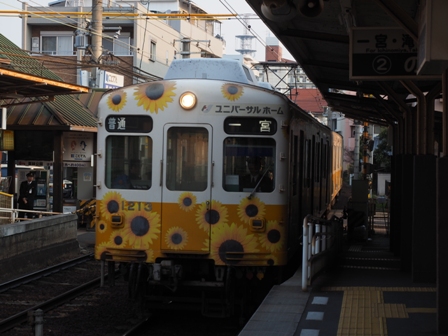 ひまわりラッピングの1200形。