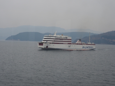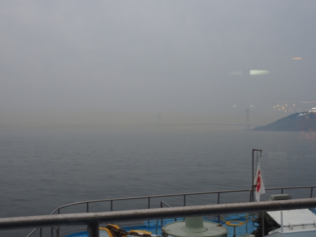 が、空も海も灰色でおもしろくない。室内からシャッターを切って終わりにする。もう少し空の色が変わるとか期待してたんだけど。期待してジャンボフェリーにしたんだけど!(逝)