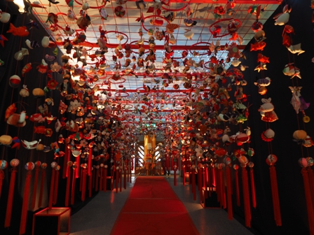 さすがに半額でも持ち帰りの牛乳の賞味期限が明日というのはつらい。通路がつるし雛になっていたので急遽カメラを取りに戻る。
