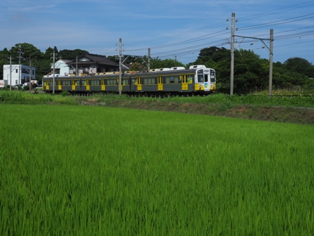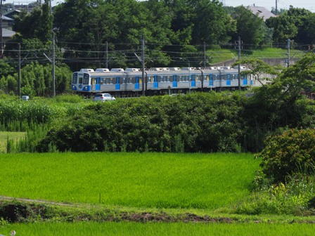線路沿いの道は途切れてるっぽいので、Googleマップを頼りに炎天下ぽくぽく歩く。車内から見えたいい感じの区間。結構歩くだろうなあと思ったらやっぱりたっぷり歩くはめになった。汗だくだ。