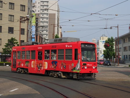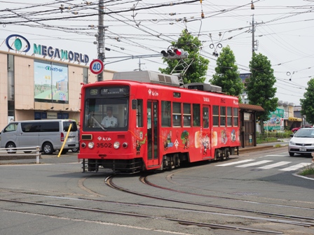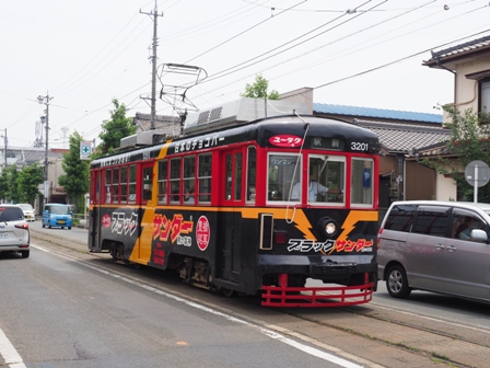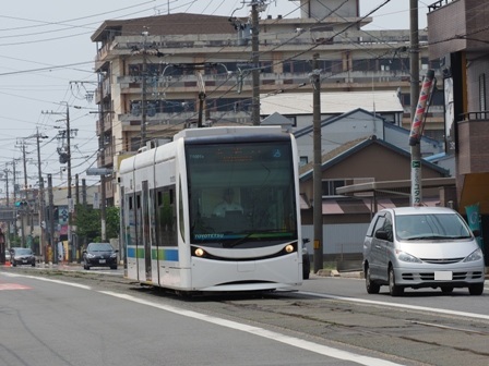 ほっトラムは、2008年に投入された超低床車。アルナ車両の作でローレル賞を受賞している。1編成しか投入されなかったのは、資金面もあるだろうけど井原の交差点を曲がれないと言う点が大きいだろう。これいつ気づいたんだか。