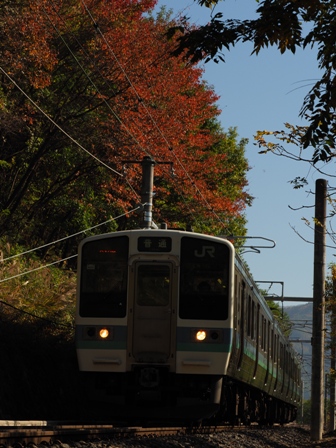 0745田切に到着。時刻表をみると朝ラッシュで連続して列車がやって来るな。晴れてるんだからまずは撮影だ。まずはΩカーブで撮る。GW以来だけど冬や春とは空気が違うね。