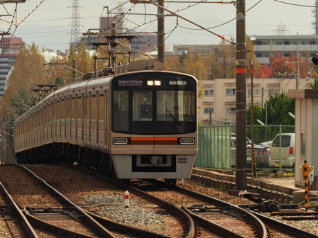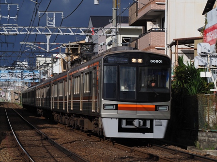 折り返しを1段落としたら撮りたかった市交66系のリニューアル車がやってきた。取り敢えず撮る。こんなに信号機が邪魔になるとは。