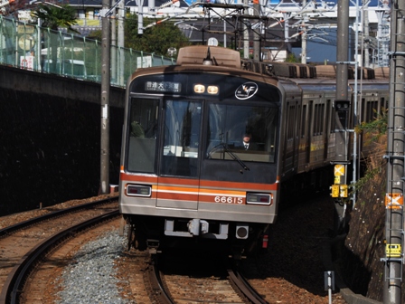 改札を出て北千里方へ少し歩いた踏切で撮影。ちょっと変わった雰囲気になった。