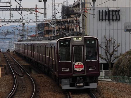 石橋で下車、2号線宝塚方で撮影。これも先週のリベンジで、日生エクスプレス20周年記念のヘッドマーク編成と、新しいヘッドマークになっている手塚治虫ラッピング編成宝夢の撮影だ。どっちも来月になると走っていない可能性があるため、連闘を決定した次第。