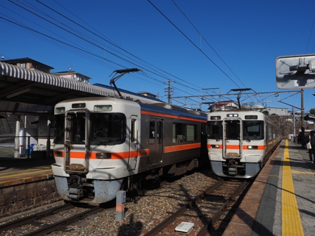 乗るのは1121の普通岡谷行。あ、これいつも乗る221Mじゃないか。313系。
