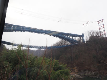 あ、雨止んでる。まあ、本格的に降るまでいったん曇りに戻るって予報だったしなあ。天竜峡を出てすぐ、架橋工事が本格的になった天竜峡大橋が見えた。