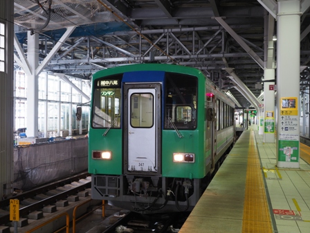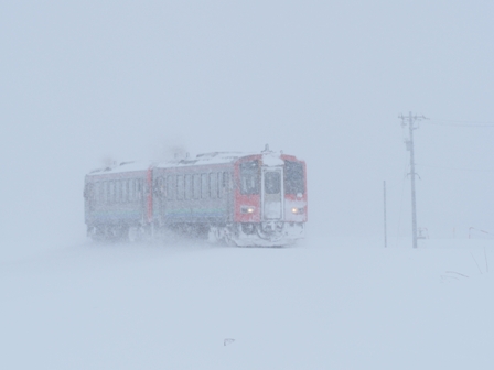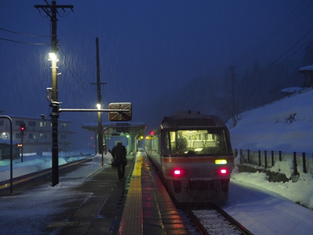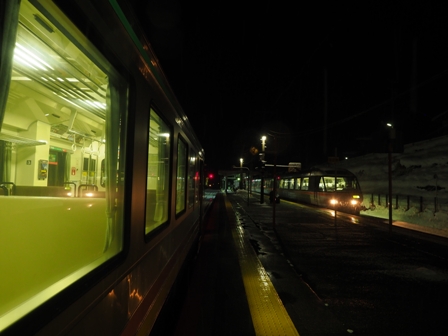 闇の中、室内灯に照らし出された雪が後ろに吹き飛んで行く。明日ちゃんと帰れるのかとか言うのはあるけどそれを引いても、たまには乗り鉄もいいよなあ、とか思ってしまう訳だ。でも満員の車内で身動き取れず、というのはちょっといやなんだよなあ。