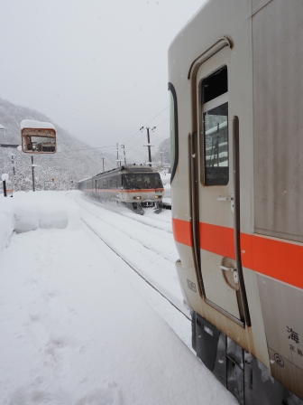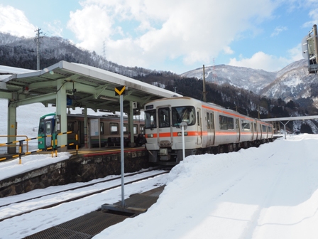 車窓の風景は雪に埋もれているけど、高山本線にとってみればこのくらいの雪は日常なのだろう。ここからは飯田線オフの帰りにも乗った1535のひだ36号なのだがまだ3時間ほどある(逝)