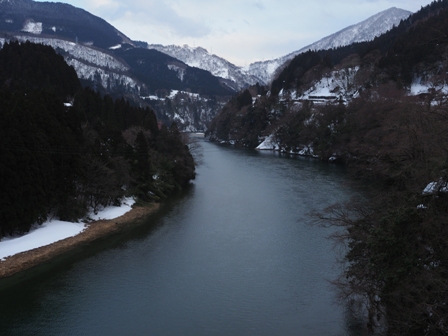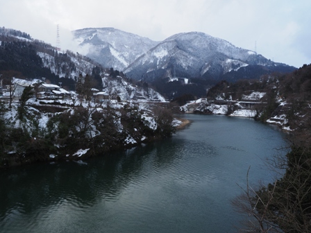 銀世界の中をディーゼルエンジンを響かせて進んで行く。窓からひんやりと冷気を感じる一般型ディーゼルカーもそれはそれで味があるが、外界と隔絶された快適な空間から厳しい風景を眺めるのはプレミアム感があってそれはそれで、という奴だ。下呂を過ぎて少ししたら太陽が見えた。よう、久しぶり(逝)青空だ。随分久しぶりな気がするな。ちょこっと厚い雲の間に青空、位なら1回くらい見た気はするけど。