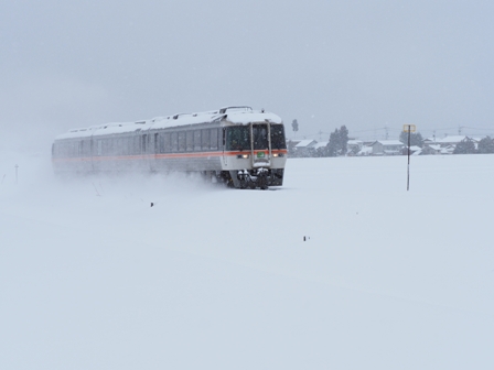 昨日の撮影ポイントに行くぞ。上りのひだ8号を何とか撮りたい。昨日、もう少し粘れればよかったのだけどあの雪と風ではもう限界だった。というわけで本日のリベンジだ。