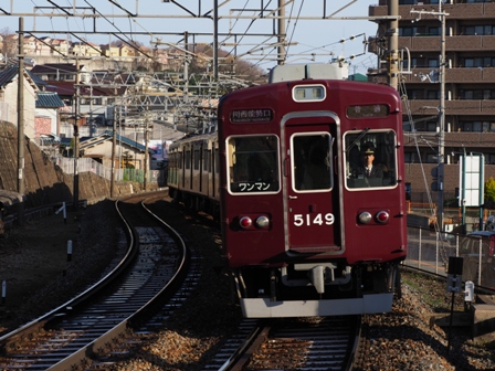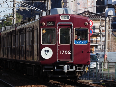 おお、確かにインバータの音がしてる。終点川西能勢口まで乗って梅田行急行に乗り換えて豊中まで。