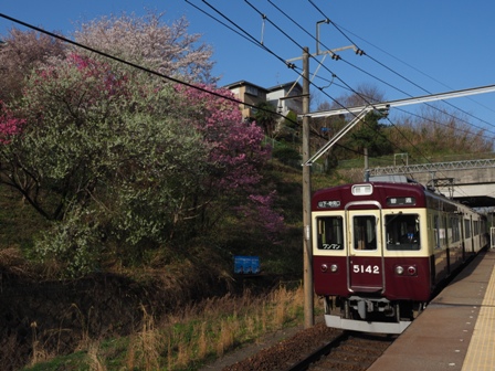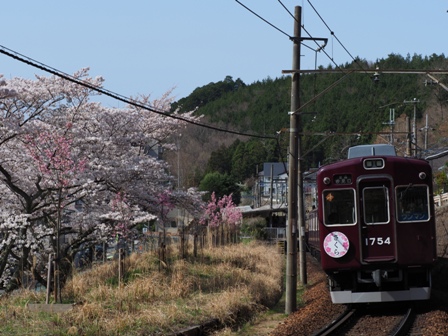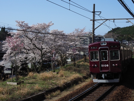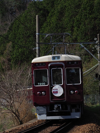 川西能勢口で能勢電に乗り換え……なんでそこに7200がいるんだ。公開されている運用じゃないのか。変更されることは当然あるわけだけど、ちょっと残念。先頭車に乗り込んで笹部まで。駅近くに桜と絡めて撮れるところがあるとサイトにあったのだけど。