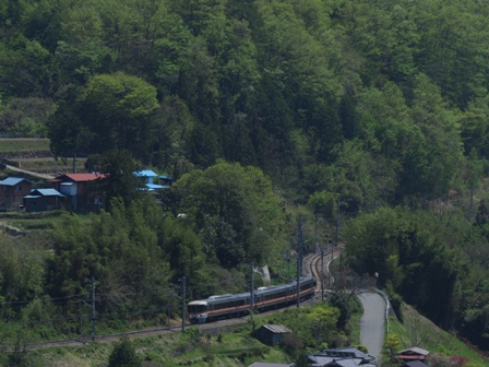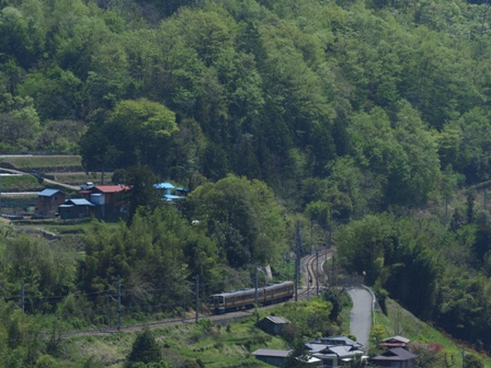 温田の俯瞰で下り普通と伊那路1号を撮影。そして昼食。