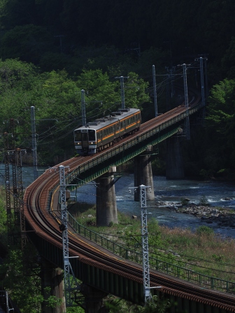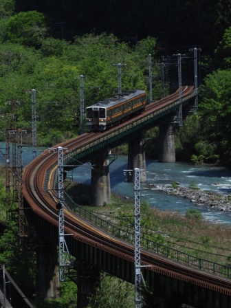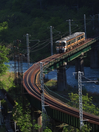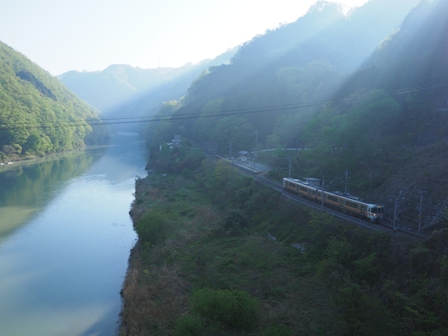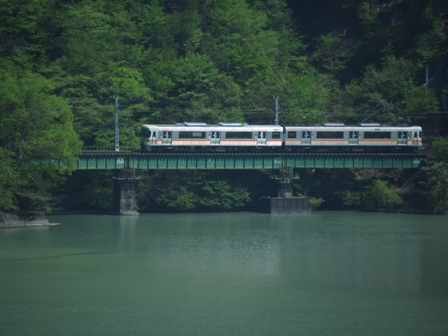 天竜川の見えるところまで移動して朝食にする。ついでに下り電車を撮影。