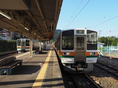 とか思っていたらやってきた213系の上り普通。こちらも中部天竜発2100で、要はこいつが何らかの理由で20分遅れになってたってことか。