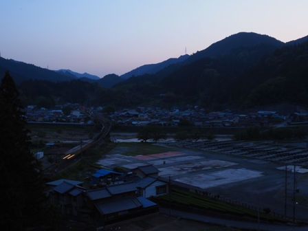 いい感じの霧、と思ったけど朝食をもしゃもしゃ食べている間に霧はなくなってしまい、始発電車がやってくるときには風景は変わってしまっていた。むむう。霧がもっと濃い日でないとだめなのかな。