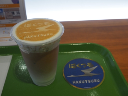 ヘッドマークをデザインしたラテを楽しんでから出発。