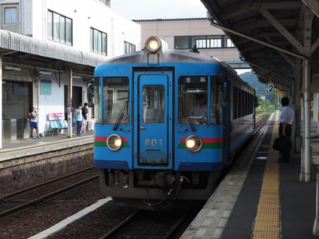 今回の目玉。JRから乗り入れてくる城崎天橋立ダイレクト。車内も改造されている車両がやって来たがこれなら朱色の国鉄色が似合うかもなあ。