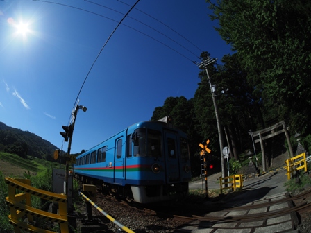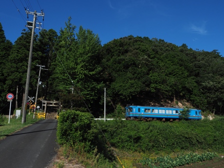 京丹後大宮近くの踏切にあった神社が車窓で印象に残った。行ってみよう。地図で見ると若宮神社というらしい。到着。逆光だ。これは単に地形の問題なのでしょうがない 。明日の朝来よう。