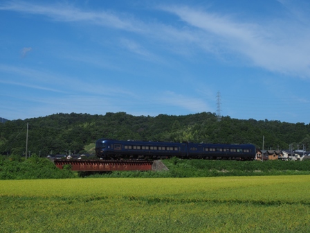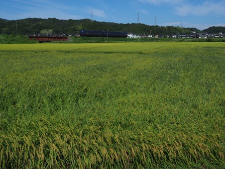 と、思ったけど気が変わって峰山手前の田んぼと築堤の風景で丹後の海を撮影することにした。