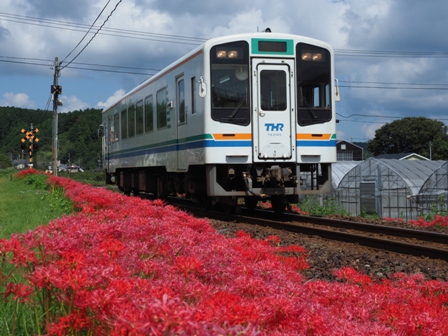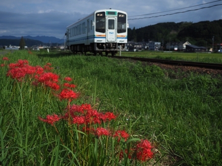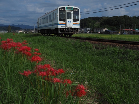 ホームから彼岸花を絡めて撮れると思ったんだけど、天候が回復したら影になってしまった。うーん失敗。