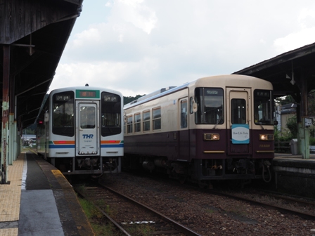駅に戻り、下り普通を撮影。昨日と同じくSLOW LIFE TRAIN だった。