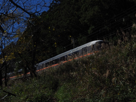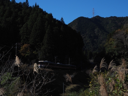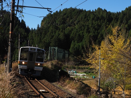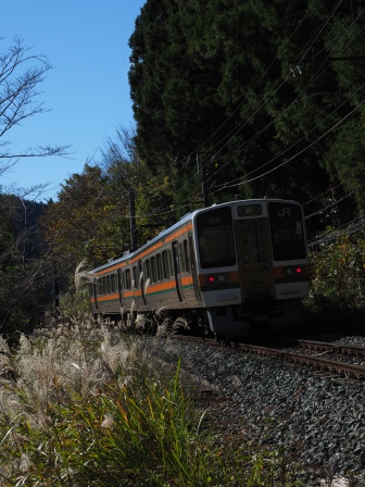 土手にいつの間にか作られた勝手道を上がるのだ。線路に近づきすぎるのは厳禁でそこが一番気を使う。って、到着と同時に飯田線秘境駅号が頭上を通過していった。げーん。こんなに早く通過するのか。