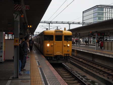 海田市で下車。山陽本線上り普通にスイッチ。終点西条で改札を出る。