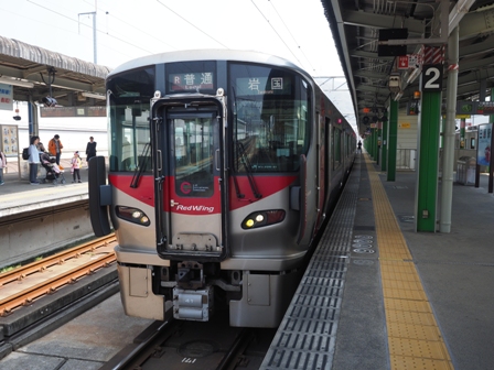 向かいのホームに待っていた227系普通岩国行345Mに乗り換える。今度は座らないのですぐの発車で問題ない。