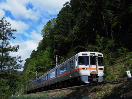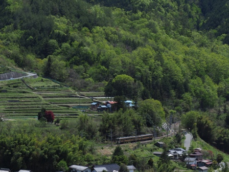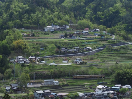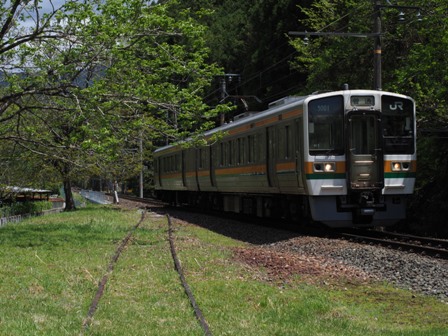 山桜がまだ咲いてる。12時過ぎの下り伊那路を撮影したら移動する。