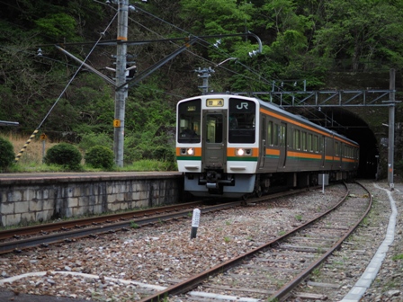 食べ終わったら線路沿いへ移動して上りの完走電車を撮る。