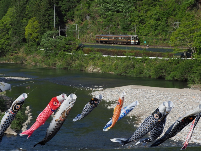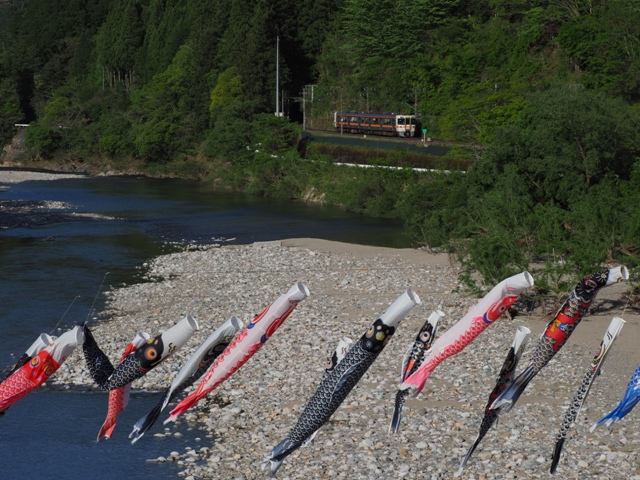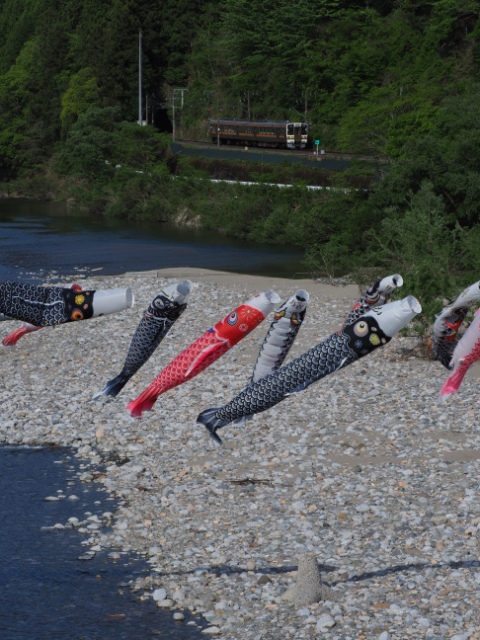 合間に川を観察。よし、こいのぼりがいるぞ。先週はいなかったのだ。どうもGWではなく、5月になったら飾られるものらしい。