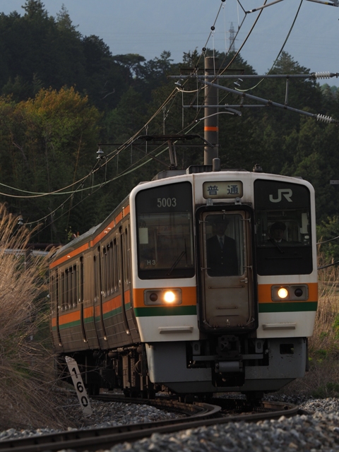 Ωカーブへ移動して373系の普通を撮る。