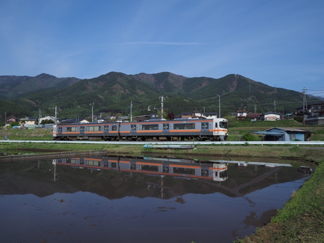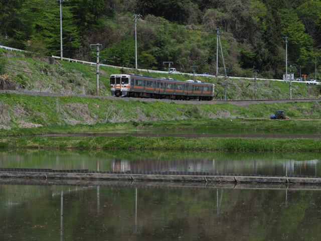 313系1700番台の上諏訪行普通を撮ったら0815移動する。移動先は豊橋方の田んぼエリア。さっき見たらこちらの水田にも水が張られていた。いいぞ。