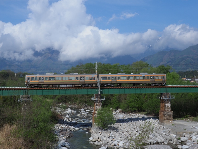 上り普通。河原が広いのが難点。