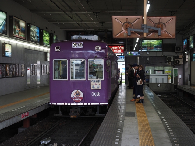 ちょっと考えて、改札を出て嵐電嵐山へ。道が真っ暗で危険。なんで街灯すらないんだろう。