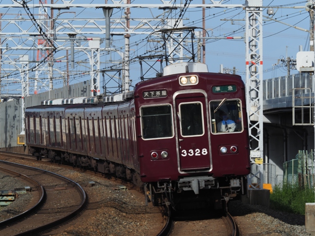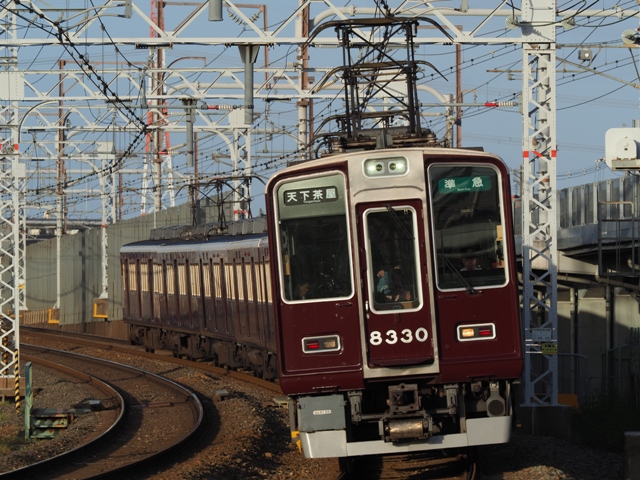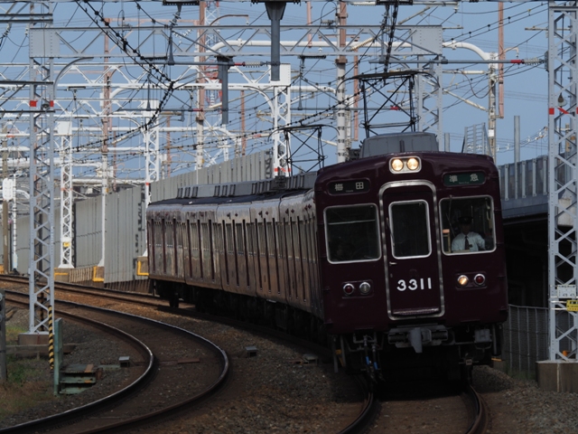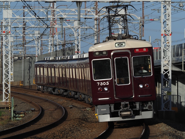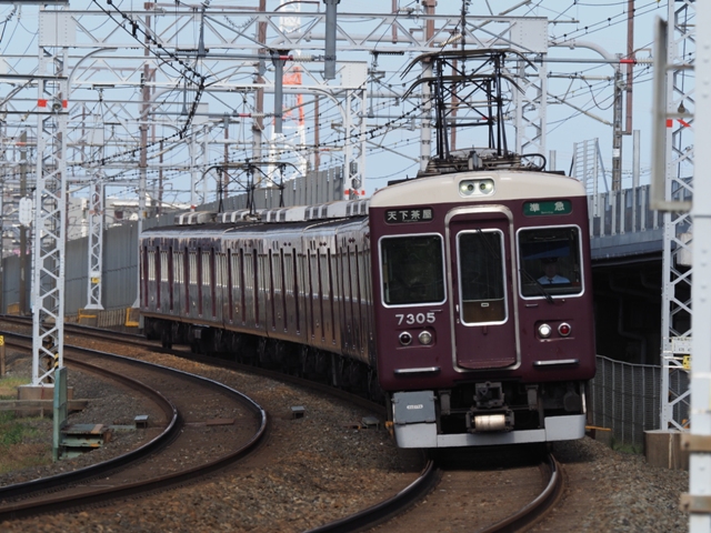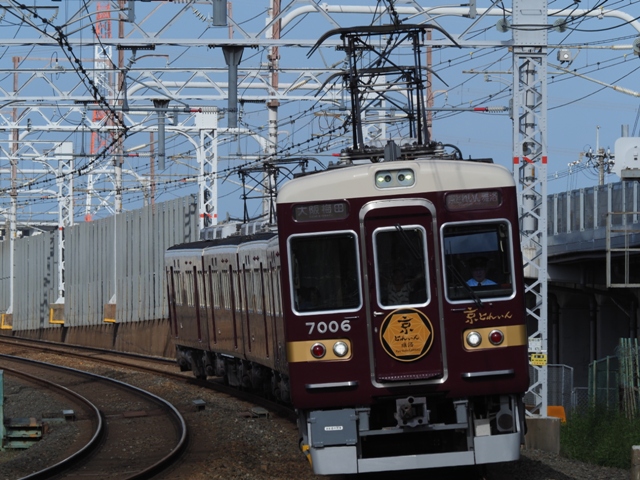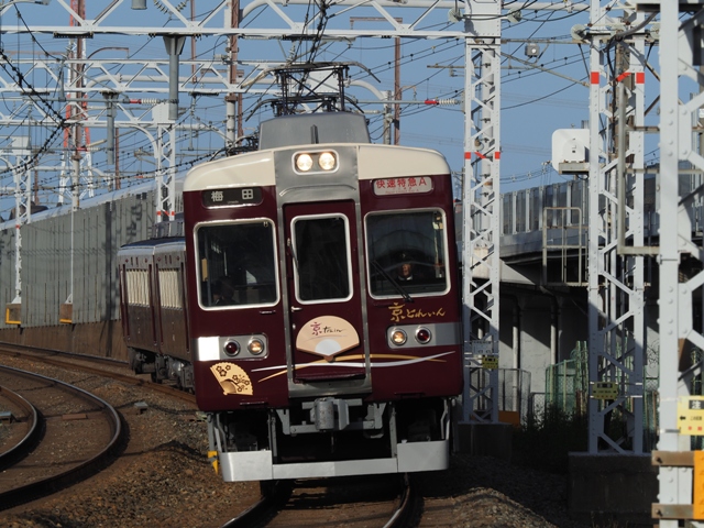 十三で京都線にスイッチ。9300系の快速急行だ。