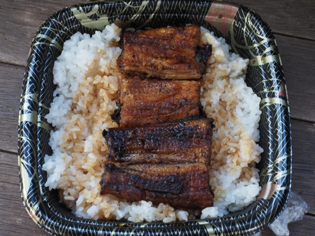 新所原の折返し待ちの間に駅舎のうなぎ屋さんでうなぎ弁当を調達。生産者直営ってことは国産である。うむ。