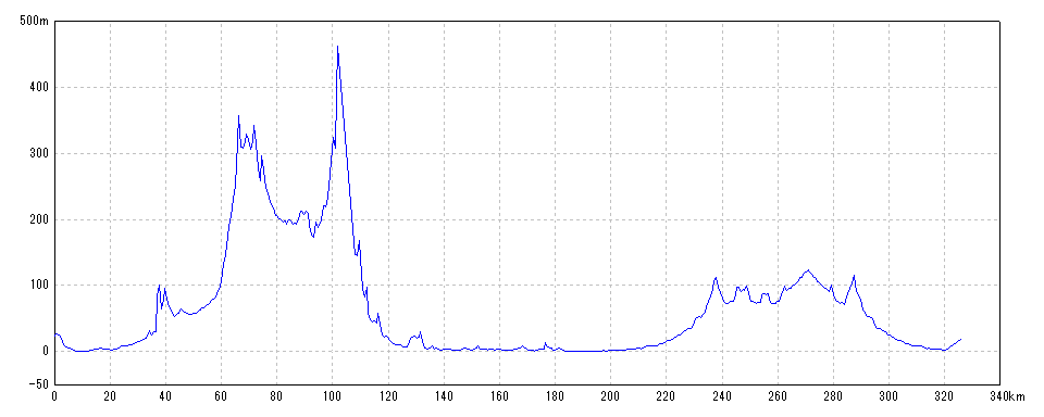 | 水平距離 | 326.03km | 沿面距離 | 326.57km |