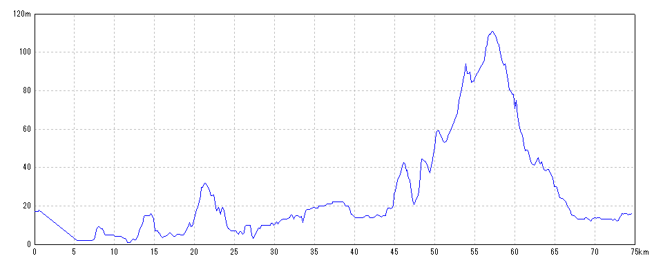 | 水平距離 | 74.63km | 沿面距離 | 74.68km |