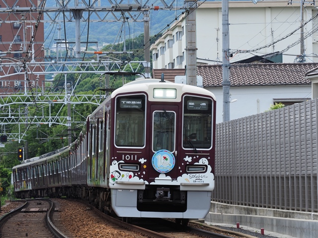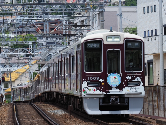 昨日調達した阪急阪神1Dayパスで改札をくぐり、下り普通に乗る。1009FのSDGsトレインだった。