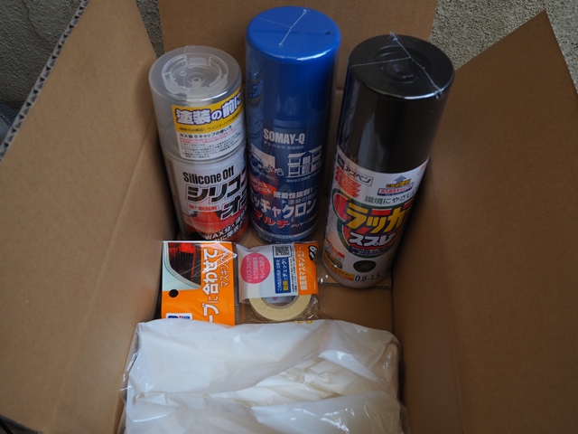 ミッチャクロンが乾いたら塗料を噴霧。今回は艶消し黒をチョイス。